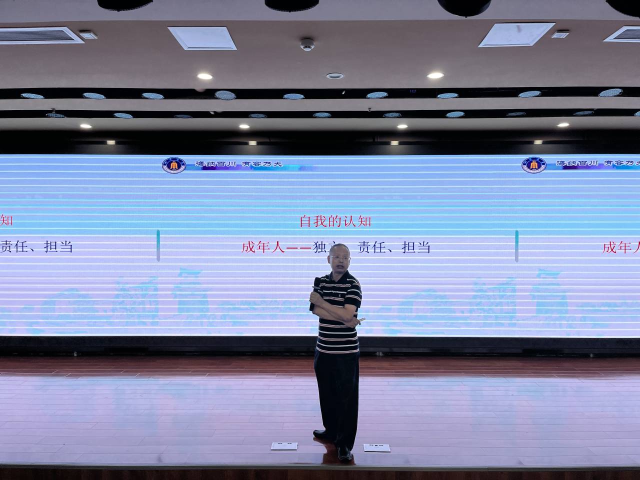 党委副书记兼纪委书记廖勇明、2023级本科辅导员陈林、申鑫和全体2023级本科新生参与,会议由2023级本科辅导员陈林主持。