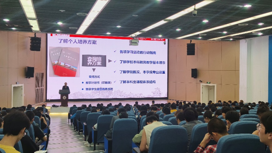 副院长雷印杰教授为2023级本科生讲授本科发展规划专题课程,2023级本科辅导员陈林老师和2023级全体新生参与。