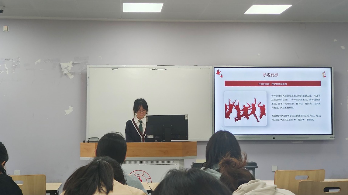 “江姐是我们中华民族的优秀儿女,是一名优秀的共产党员,为实现共产主义贡献了自己的一生。她的生命很短,仅有29个春秋;她的生命很长,活在每一个中国人心里。我们应该铭记历史,心向人民,做一名热爱祖国,奉献社会,心系百姓的有志青年。”在下午的总结会议上,肖琪同学被江姐的事迹所打动,不禁发出这样的感慨。