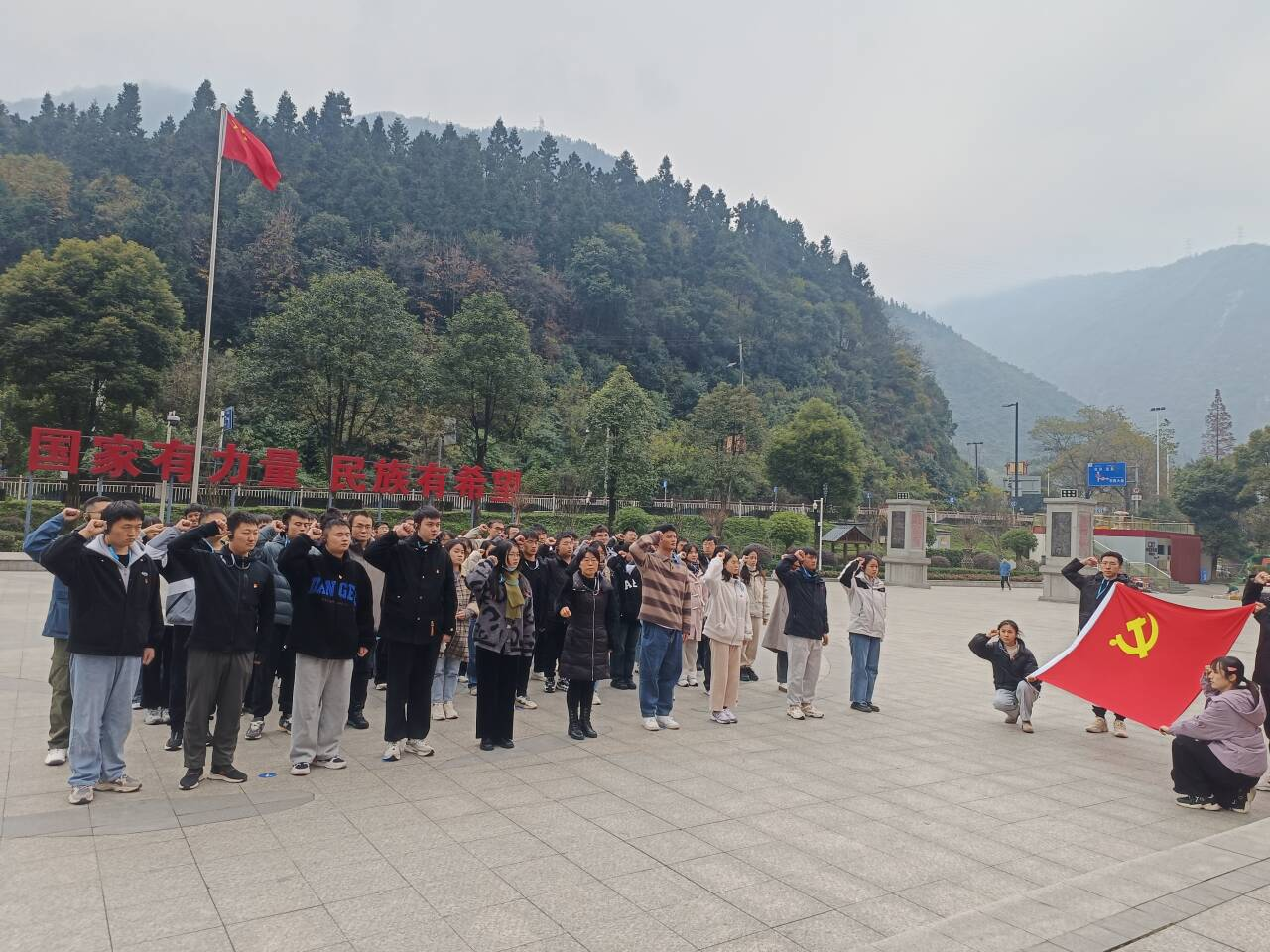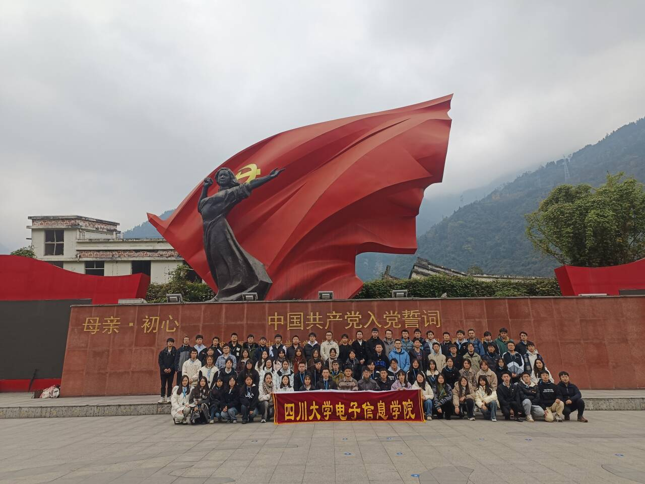 研究生各党支部联合开展了主题为“参观汶川大地震遗址,弘扬爱国主义精神”的党日活动。本次活动以线下的方式举行,2023级研究生辅导员何惠老师兼年级第二党支部书记以及各党支部全体党员参加活动。