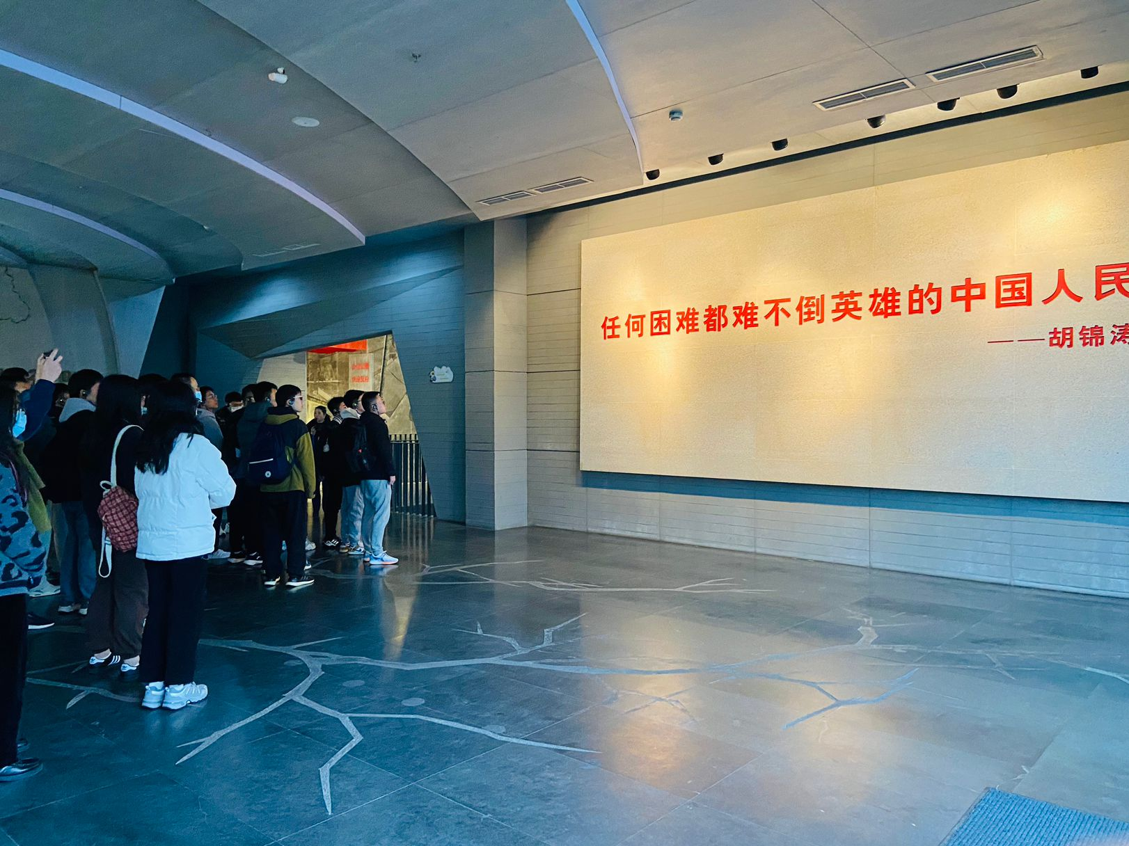 下午一点,当各位党员进入漩口中学地震遗址大门时,首先映入眼帘的是台阶上硕大的石雕钟表,时间永远定格在2008年5月12日14时28分,时针和分针的巨大裂痕代表着灾难的轰然而至。为追思逝者,全体党员在此肃立默哀,深切缅怀,并献上鲜花。各位同志认真听取了讲解员细致的讲解,知晓了当时救援过程的艰辛,面对如此灾难,在党中央、国务院的坚强领导下,全党全军全国各族人民众志成城、迎难而上,迅速开展了我国历史上救援速度最快、动员范围最广、投入力量最大的抗震救灾斗争,夺取了抗震救灾斗争伟大胜利,谱写了感天动地的英雄凯歌。