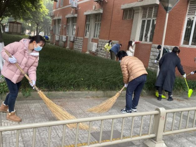 党委廖勇明副书记和全体辅导员老师,与心理健康中心张莹副主任、冯佳老师、董薇老师一起带头参与,同学们积极响应号召并踊跃参与集体劳动。
