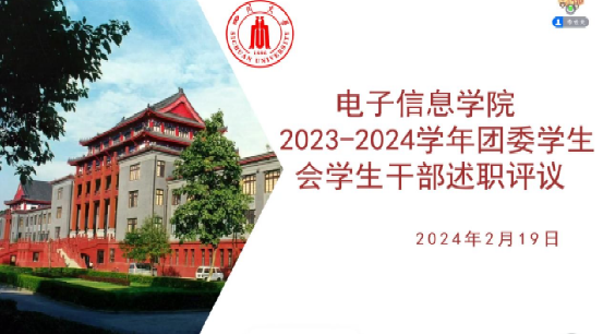 团委学生会23-24学年秋季学期学生干部述职评议于线上顺利举行。本次述职评议大会旨在让团委学生会干部对23-24学年秋季学期期间工作的情况、心得体会、存在的问题进行总结汇报和反思,并为新学期更好地开展新的工作做好准备。