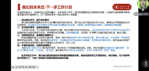会议最后,申鑫老师对班团工作进行了充分肯定,并希望大家继续努力,一方面要稳固自己的学习成绩,另一方面也要积极探索走出去的联合工作方式,多学习、多交流、多促进。