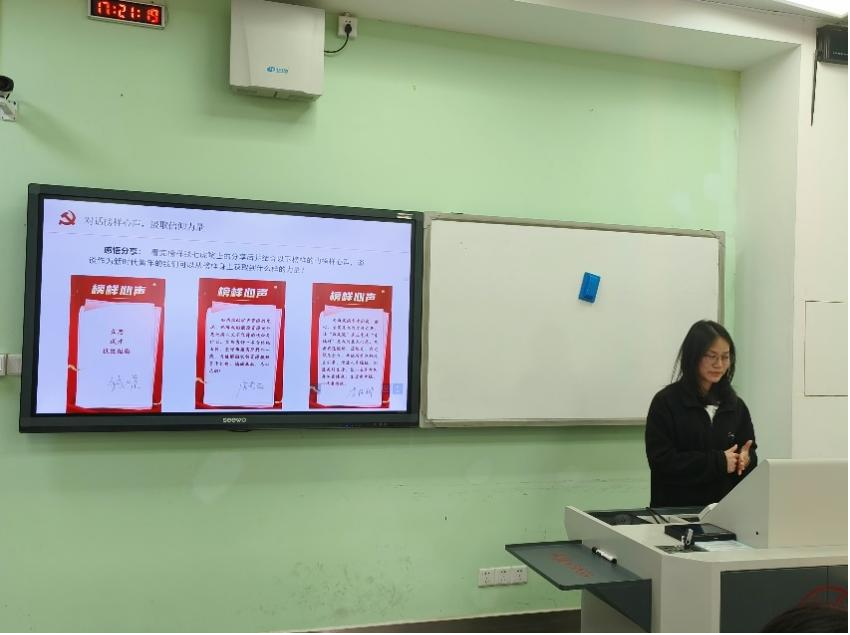 在本次党日活动中,主讲人唐璇同志为我们带来以“以‘榜样之光’照亮新时代‘赶考之路’”为主题的演讲,她主要通过介绍榜样故事,讲述榜样风采,从而鼓励各位同志以“榜样之光”为动力,走好新时代的“赶考之路”。