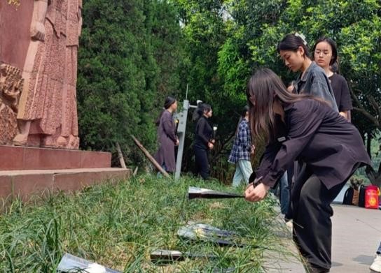 本科2022级入党积极分子、预备党员及年级部分同学在辅导员陈林老师,兼职辅导员柴瑾老师的带领下,于四川大学江安校区烈士碑前进行了一系列祭奠活动,表达对先烈的崇高敬意,传承红色基因。