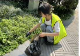 首先,同学们在成都市人民公园门口集合,拿出劳动工具——手套和垃圾袋,在各组组长的带领下进入公园,同学们满怀激情,将沿途所见的垃圾全部捡起来放进垃圾袋,到达分组目的地后以更加积极主动的态度参与到卫生清理当中,将志愿活动蕴含的社会责任感和奉献精神体现得淋漓尽致。同学们手持垃圾袋,在路边蹲起、弯腰,只为捡起丢弃物,创造一个更加洁净的公园环境。