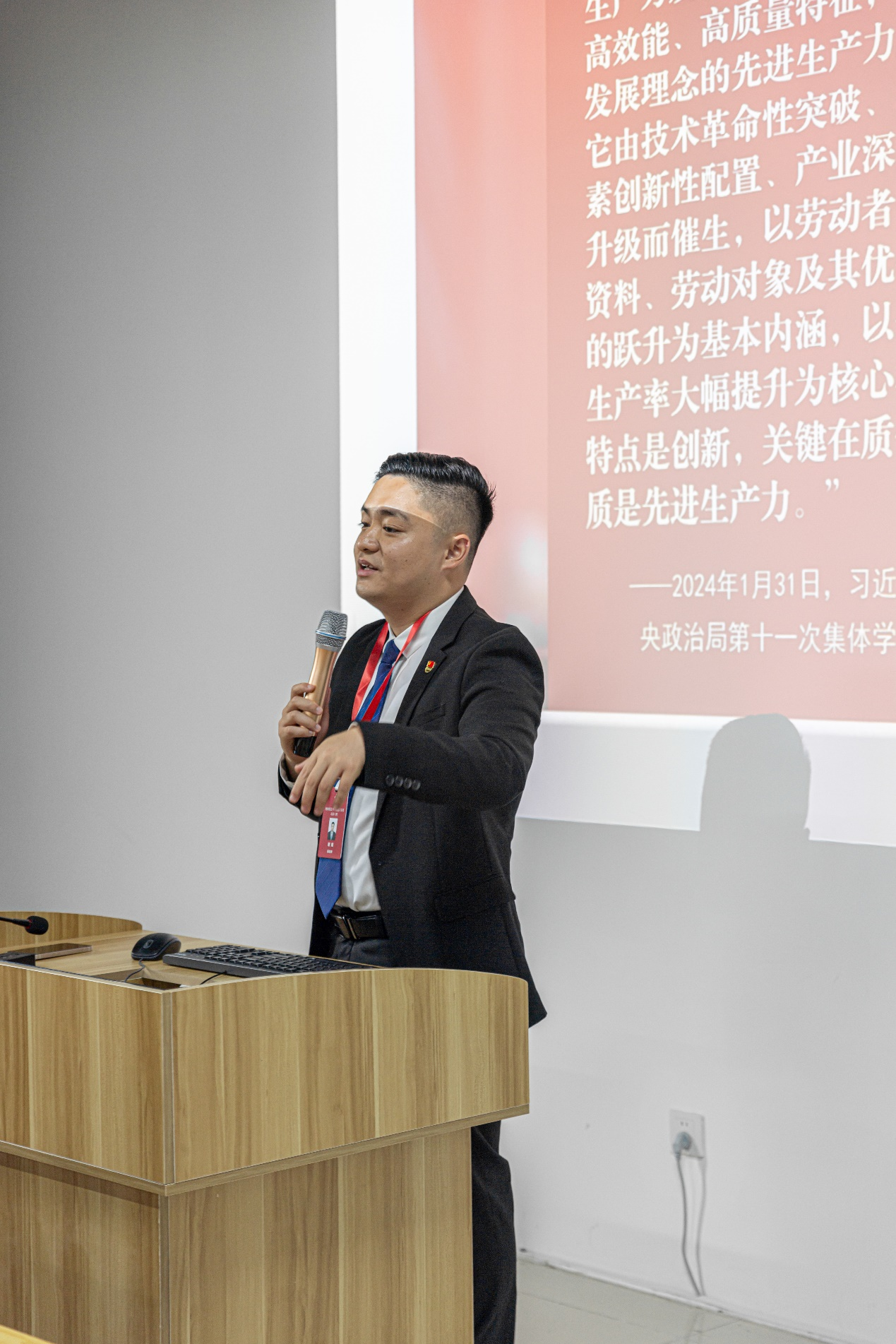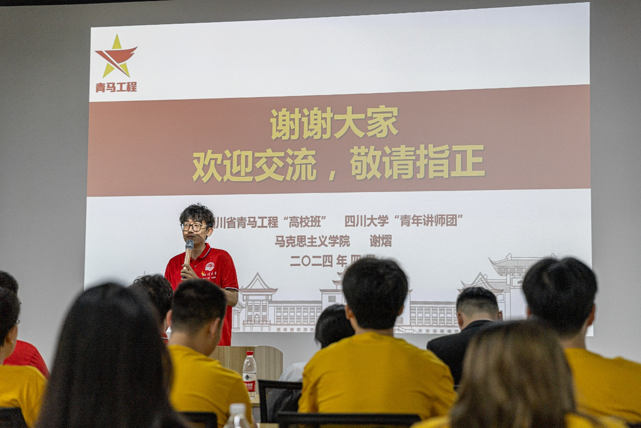 四川省青马工程“高校班”学员代表、四川大学“青年讲师团”成员谢熠开展主题教育分享,结合自身的学习经历和实践经验,深入浅出地阐述了马克思主义对生产力和生产关系的理论。
