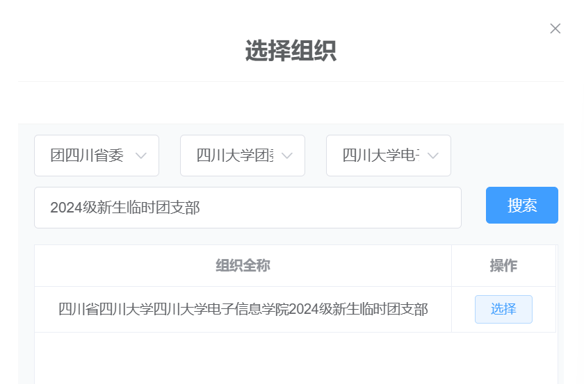2024级新生团支部”,可能是系统的不稳定性导致的,可以在24h后再次搜索。