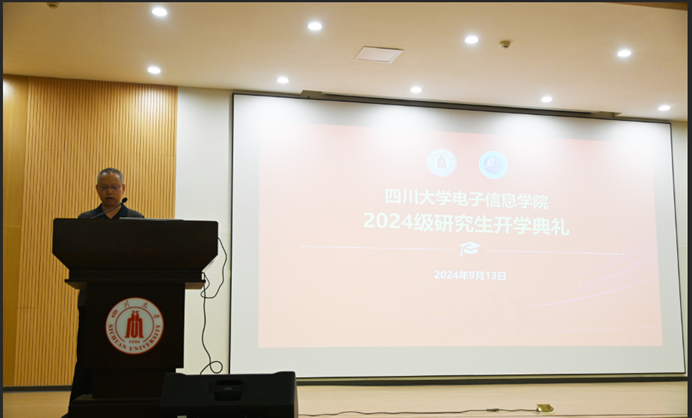 院长杨阳教授、党委廖勇明副书记、副院长卿粼波教授、教师代表周新志教授、辅导员张帆老师及全体2024级研究生参加了本次典礼,典礼由党委副书记廖勇明主持。