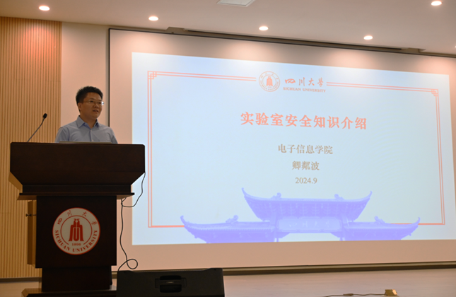 副院长卿粼波教授讲解了实验室安全知识。他强调实验操作中的安全规范,包括防护措施、设备操作和应急处理的重要性,提醒学生严格遵守实验室规章制度,防范意外事故。同时,卿粼波教授还提到实验室共享资源的合理使用和保持整洁有序的工作环境,希望大家在科研中不仅追求创新与进步,也要始终把安全放在首位。