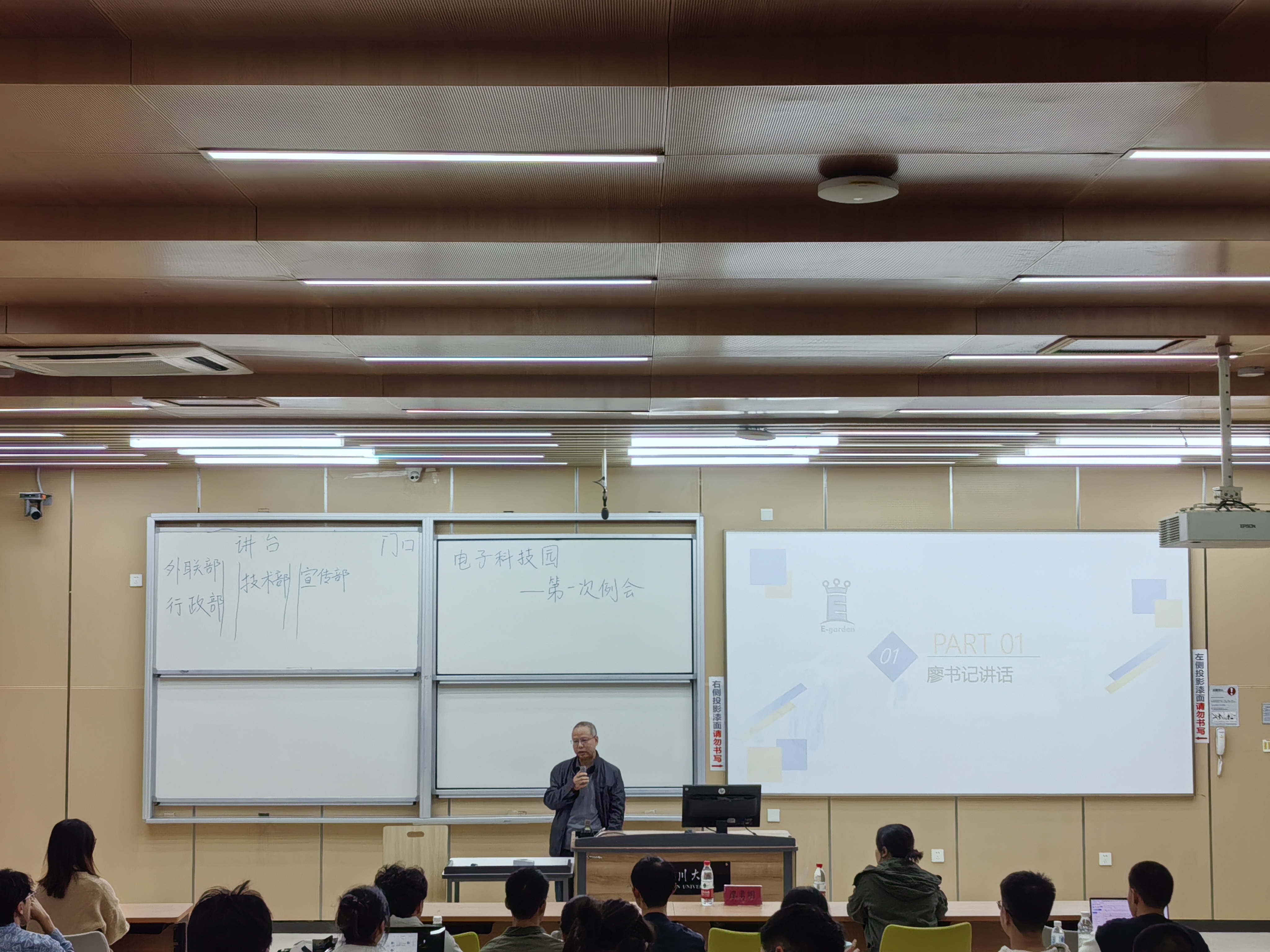 活动伊始,廖勇明副书记代表四川大学电子科技园对2024级新干事们表示了欢迎,就学校对电子科技园的重视程度、电子科技园所取成就和创建历史三个方面向新同学介绍了科技园,并表达了对于电子科技园的殷切希望。在廖书记的精彩发言之后,主席团四位学长学姐分别进行了自我介绍,回顾了科技园在九月份的工作成果,并梳理了十月份科技园即将开展的工作。随后,行政部、宣传部、外联部、以及技术部分别上台,对各部门的工作进行了总结,并为十月份的工作安排提出了具体的计划,让新同学有了目标和动力。