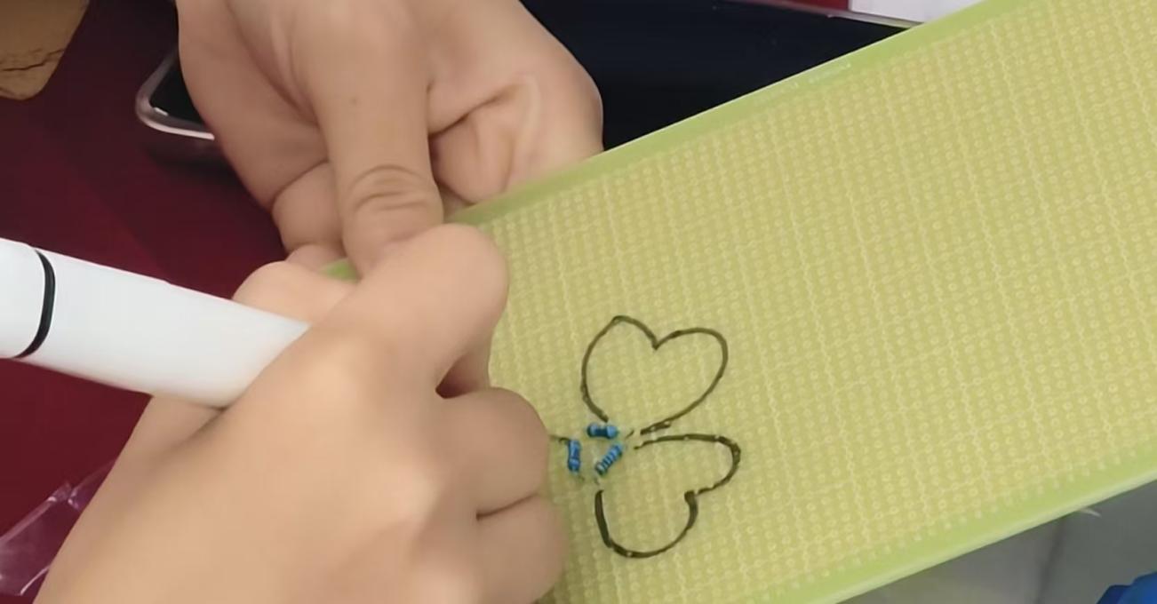 的同学助阵指导。活动全程免费为参赛同学提供洞洞板、彩色电阻、焊枪、焊锡、松香等专业的焊接工具,确保良好的体验;同时负责活动的同学也贴心地准备了紧急医疗处理套装,以防意外烫伤,全力保障大家的安全。活动伊始,前来参与的同学络绎不绝。活动过程中,同学们全神贯注,从构思图案色彩到排布焊接电阻,一点一点地完成自己作品,体验创作带来的的无穷乐趣。将终,同学们仍旧热情不减,为了让大家不留遗憾,活动延长至晚6时。