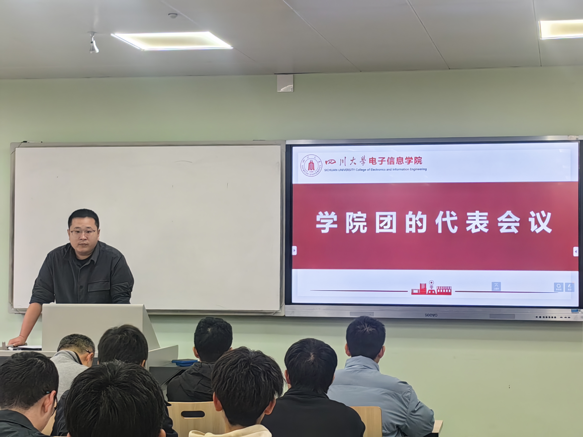 团的代表会议在四川大学望江校区基教A511顺利举行。院团委书记谢明、院团委副书记何阳、院团委副书记申鑫以及五十余名团员代表参会,会议由申鑫主持。