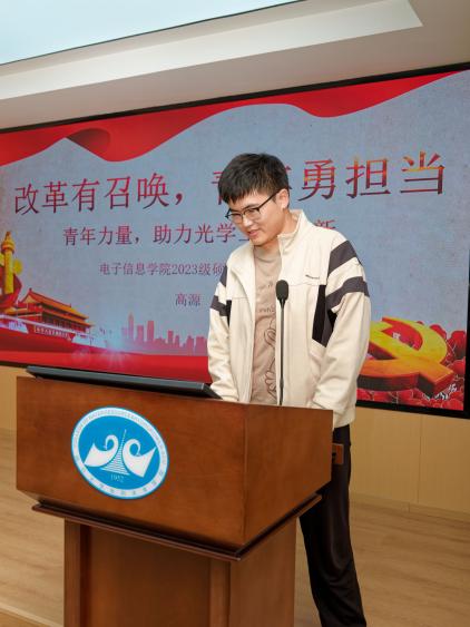 王宏涛同志结合自身专业特点做出了自己的回答。高源同志从光学工程领域在新时代遇到的机遇与挑战入手,引用苏东林院士提出的“坚持‘世界一流’与‘中国特色’有机融合”强调了科技创新对光学工程的推动作用以及光学工程在可持续发展中的作用。最后,高源同志提出作为新时代青年,应肩负起时代赋予的使命,积极投身科技创新实践,勇于探索未知领域,致力于个人综合素质的培养与提升,为产业升级和国家发展贡献青年力量。王宏涛同志以水利学子的角度讲述了水利水电专业的故事,提出数字水网彰显我国水利事业新质未来。他以数字水网为例,提出数字水网的建设不仅是提升成渝双城经济圈水资源管理能力的重要举措,也是推动区域经济高质量发展的关键因素,强调作为水利学子更应该紧跟党的步伐,找准水利事业在生态文明建设中的站位,坚持“绿水青山就是金山银山”的绿色发展理念,坚持保护为主,适应发展新格局,推动水利事业高质量发展,为人民的幸福安康和民族的伟大复兴提供最坚实的保障。