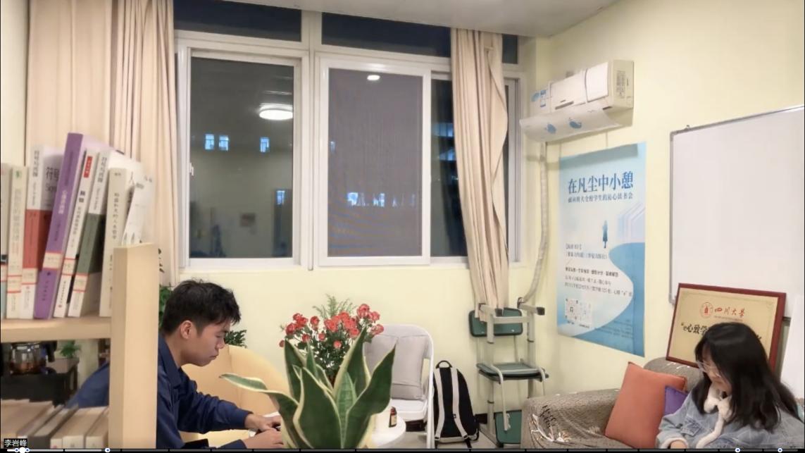 二级心理辅导站和四川大学“e心致学”辅导员工作室联合承办的“在凡尘中小憩”沁心读书会第三次活动在四川大学望江校区东三教学楼525室顺利举办。本次活动由何惠老师线上参与并指导,辅导站学生站长李岩峰和参与者涂欣悦同学共同领读,线上线下同时开展。