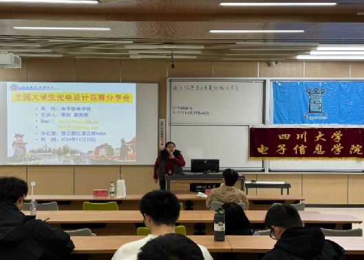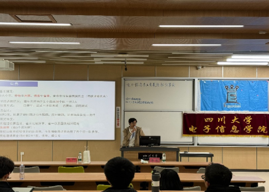 在四川大学江安校区综合楼C座C103组织进行了电子信息专业竞赛经验分享会,主讲人为李玮副教授和肖迪学长。