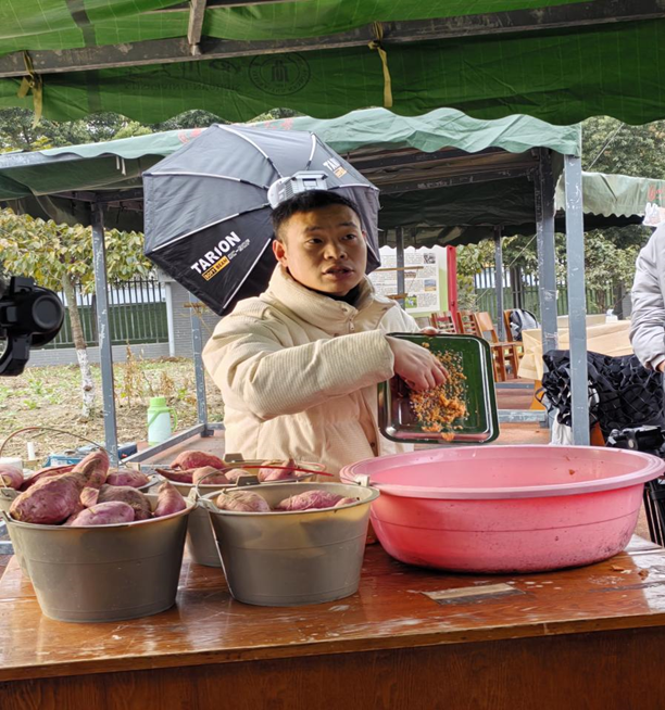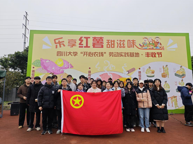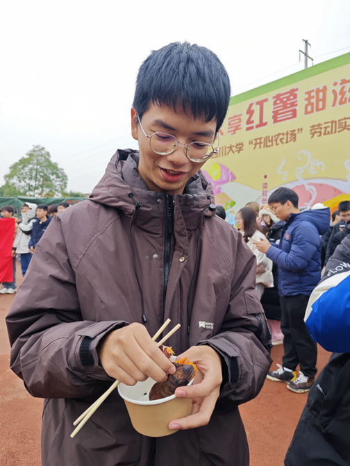 本科2023级5班、9班同学走进江安校区开心农场共同开展“探薯粉古法,品烤薯醇香”主题劳动实践活动。