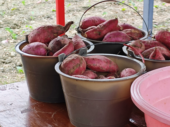 与此同时,开心农场的其他志愿者们也为大家准备了香气四溢的烤红薯,金黄的外皮下包裹着软糯香甜的薯肉,令人垂涎三尺。同学们在品尝的同时,也各自分享了本次劳动的感悟。谭晶晶同学分享道:“一分耕耘一分收获,在制作红薯粉的过程中,我深刻体会到了劳动的艰辛与乐趣,也更加明白了食物的来之不易。在今后的生活中,我将更加珍惜每一份劳动成果。”