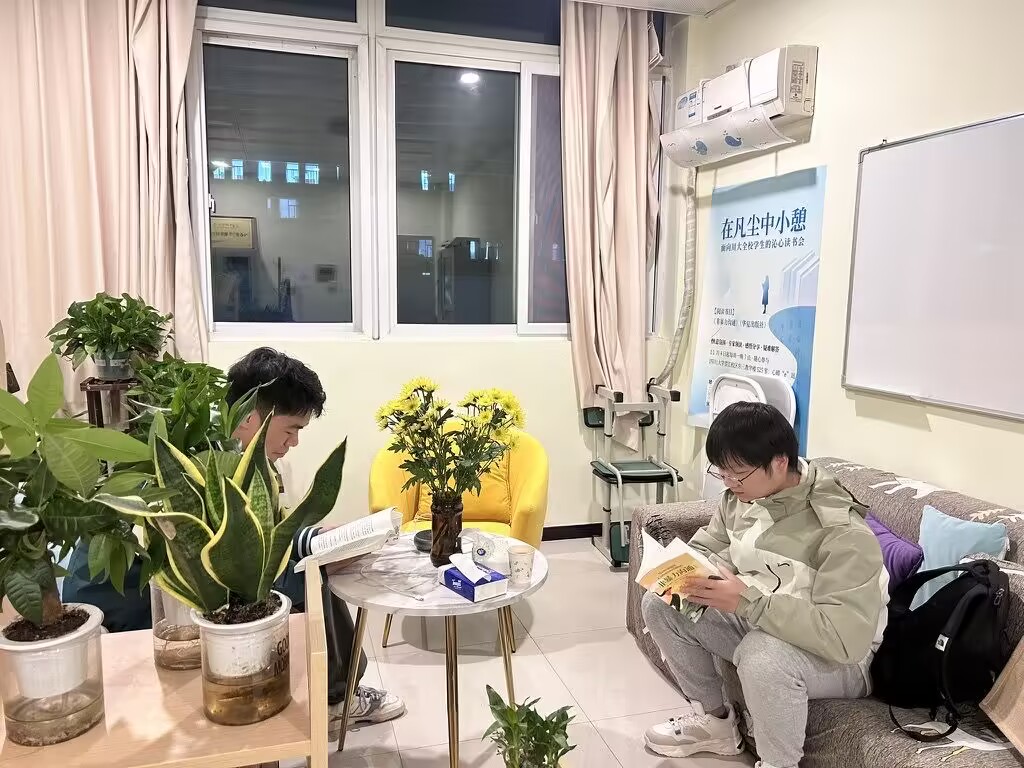 二级心理辅导站和四川大学“e心致学”辅导员工作室联合承办的“在凡尘中小憩”沁心读书会第五次活动在四川大学望江校区东三教学楼525室顺利举办。本次活动由何惠老师线上参与并指导,辅导站学生站长李岩峰领读,线上线下同时开展。