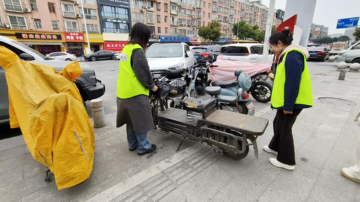 上午9时,志愿者们准时集合,迅速分为两组投入工作。一组志愿者手持扫帚、垃圾袋等清洁工具,认真清扫盲道上的垃圾杂物,确保视障人士出行路径畅通无阻;另一组志愿者则负责规范停放占用盲道的非机动车,他们耐心地将一辆辆共享单车和电动车搬离盲道,整齐摆放至指定停车区域。