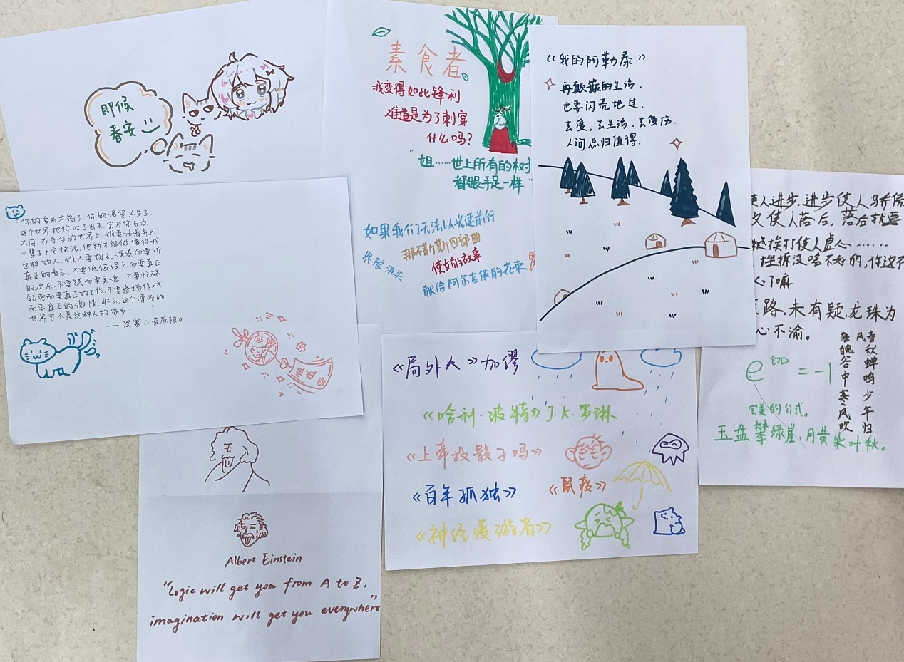 为进一步感悟书籍美丽,同学们纷纷拿起画笔,将自己心爱的书籍以独特的方式呈现在画纸上,用色彩和线条勾勒出阅读的无限魅力。在同学们笔下,那些曾经只存在于字里行间的故事,如今在画纸上跃然而出。同学们纷纷表示,在画笔和书籍的交融中,他们对阅读有了更深的理解和感悟,也更加坚定了在书海中遨游的决心。