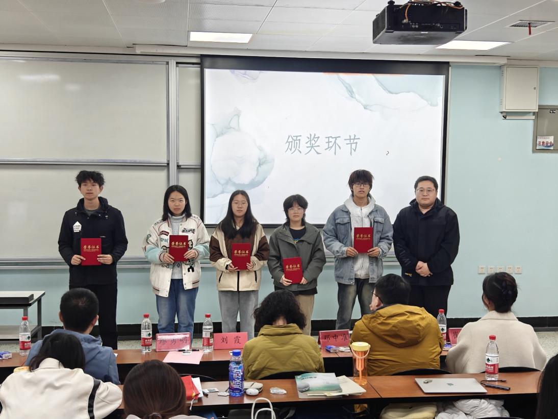 分享结束后评委现场打分,决出特等奖1组,一等奖2组,二等奖3组,三等奖5组,优秀奖9组,获奖同学代表上台领奖合影留念。
