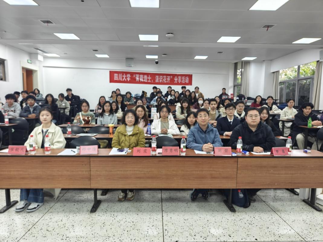 以书为媒,跨越学科之界,共赴一场思想与智慧的春日之约!为营造读书氛围,进一步加强学校学风建设,培养同学们良好的读书习惯,3月29日下午两点,“菁莪造士,汲识花开”读书分享会于四川大学江安校区第一教学楼b座104教室举行。