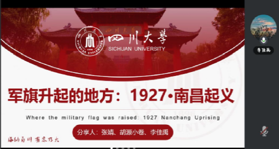 胡源小卷、张婧、李佳禹带来南昌起义的党史分享。三位同学从南昌起义的背景开始介绍,用树状图的形式系统地梳理整个起义的过程和关键战役。南昌起义在中国共产党历史上具有重大历史意义,小组成员不仅总结了南昌起义在过去的经验教训,还思考了南昌起义对于新时代强军目标、全面从严治党与军队改革以及革命道路探索的启示。