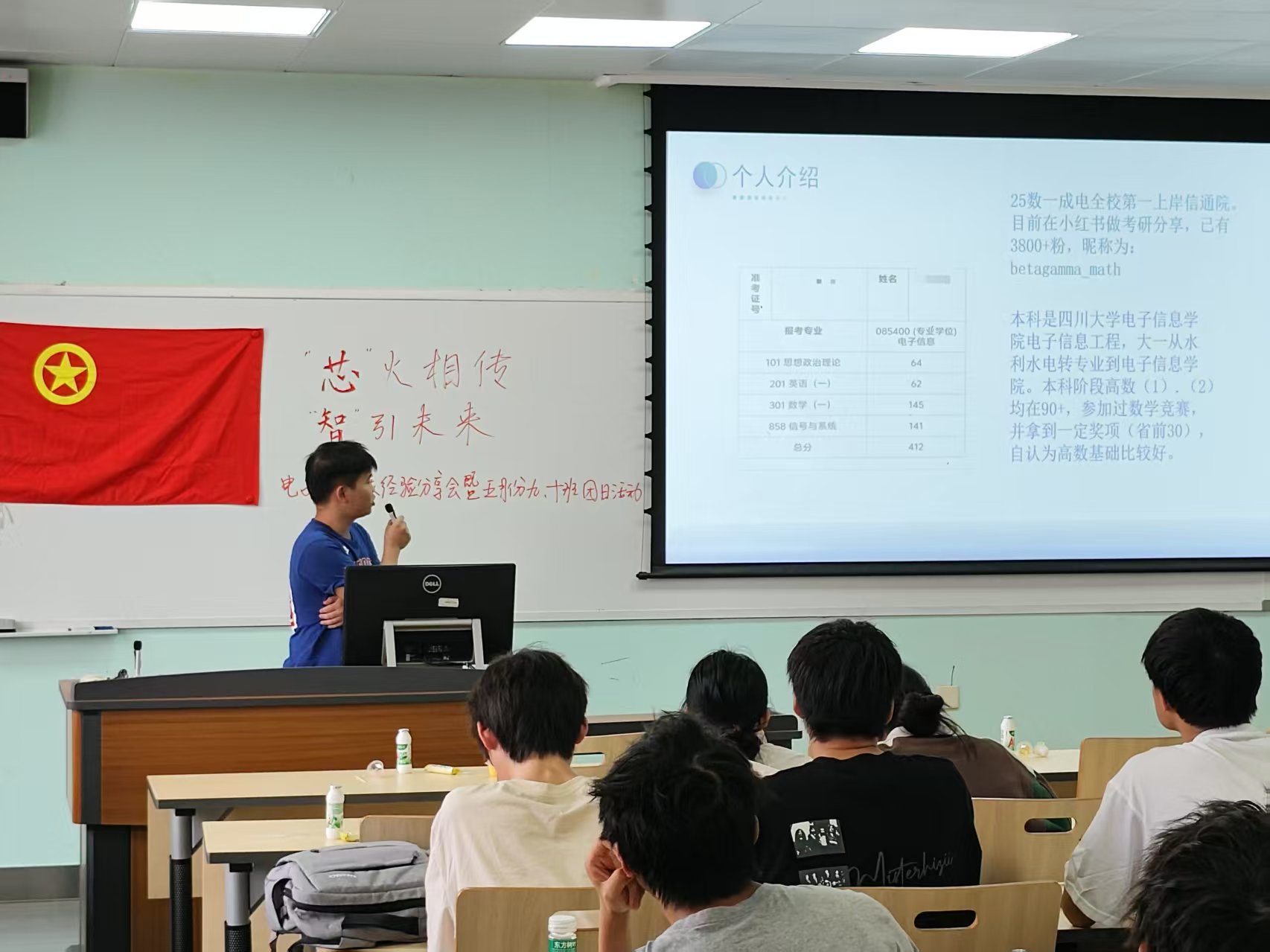 总成绩第一名上岸清华大学电子工程系的周瑞奇学长以自身科研经历为脉络,向同学们介绍本科阶段该如何寻找导师、确定研究方向等;罗仕贤学长则以高等数学的学习为切入点,教授大家数学学习的秘诀。