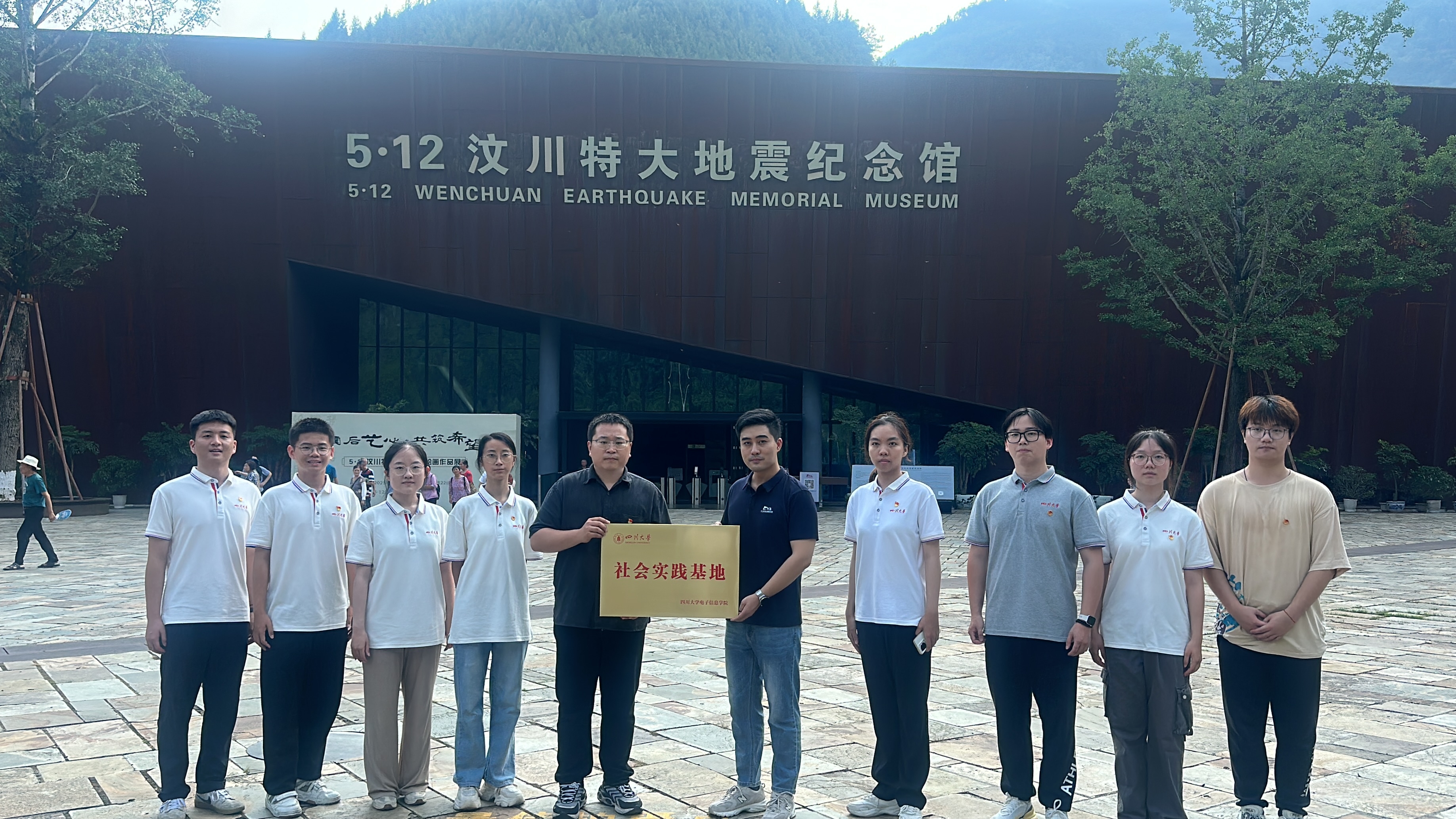 在5·12汶川特大地震纪念馆进行了社会实践基地授牌仪式。实践团成员易音彤表示:“此次社会实践基地的设立让我日后能够有更多机会深入了解抗震救灾精神,并用科技的力量为抗震救灾贡献青年智慧。”