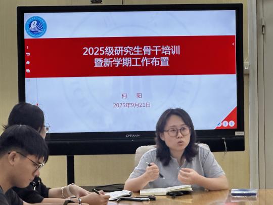 研分会主席张栢宁、研究生分团委副书记吴宇伦,及2025级研究生骨干之年级长、党支书、班长、团支书、心理委员一同参与。本次会议旨在提升研究生骨干的工作能力,以更好地完成新学期工作。