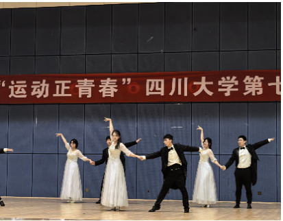 12名同学组成的体育舞蹈队,身着礼服登场。他们舞步轻盈,配合默契,将青春的活力与华尔兹的优雅相融合,舞出了属于青年的蓬勃朝气。