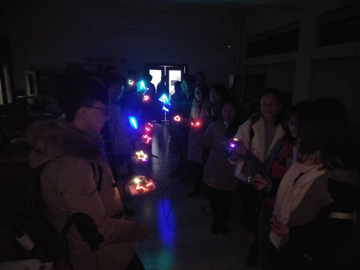 2017级全体同学进行了宣传,之后积极接受了同学们的踊跃报名,并从周一晚开始分发焊接材料。此后一周内,科技园内每天都有部长值班,部长们耐心答疑、指导并带领同学们完成DIY焊制整个有趣的过程。12月24日晚上7点,沙龙准时开始。同学们将一周的成果带到实验室进行展示交流,如五角星、摇摇棒、心形灯、彩灯小树,各种炫酷的DIY作品在一开始就烘托七起了全场的气氛。电子科技园技术部部长邱峻寅代表电子科技园对同学们的到来表示了欢迎,详细审视了同学们自己动手制作的DIY焊接作品,接着,部长组织了参与的同学们随机交换自己的作品作为年底礼物的活动,大家都写下了自己心底给对方的祝福,然后进入了欢快的游戏环节,现场气氛热烈,笑声连连,整场沙龙活动在欢声笑语中画上圆满的句号。