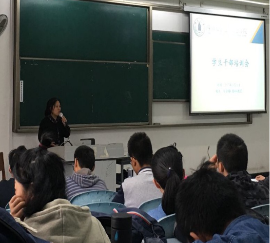 江安校区全体学生干部在四川大学江安校区综合楼C座404教室举办了学生干部培训会,参与此次干训会的有电子江安校区三位辅导员辅导员老师们及一、二年级学生干部。