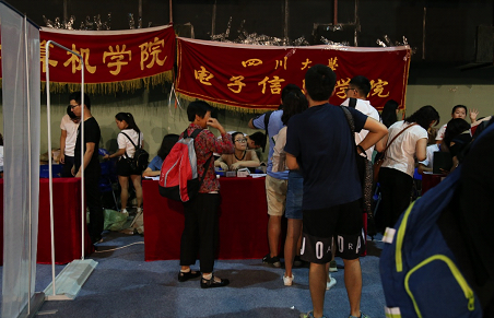2015级辅导员李军华老师就带领研分会的同学们前往迎新报到现场为同学们准备好了报到所需的材料。9月12日早上8:00,报到工作正式开始,2017级新生陆续来到位于体育馆负一楼的报到点进行注册报到。今年四川大学研究生报到采用手机APP扫码的方式进行,极大地节省了报到所需时间,为同学们提供了方便。在核对身份证件,收取学生承诺书后,志愿者为新生依次分发校园卡、报到须知等材料,并耐心地解答了同学们关于报到的各类问题。在报到过程中,8bo即时比分