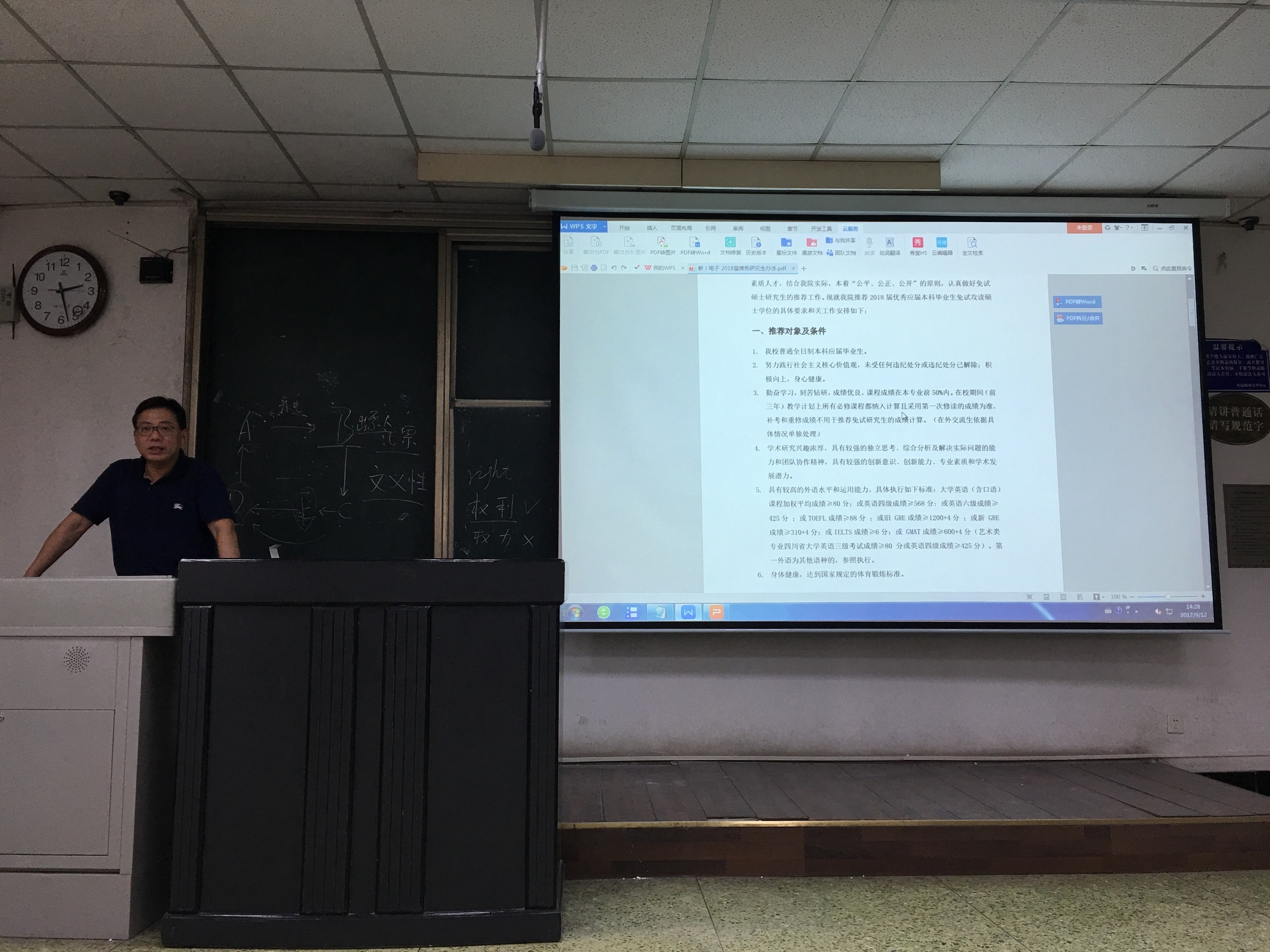 雷印杰副教授,2014级辅导员吴秀玲老师,以及所有拟参加研究生推免的2014级优秀本科生。会议由吴秀玲老师主持。