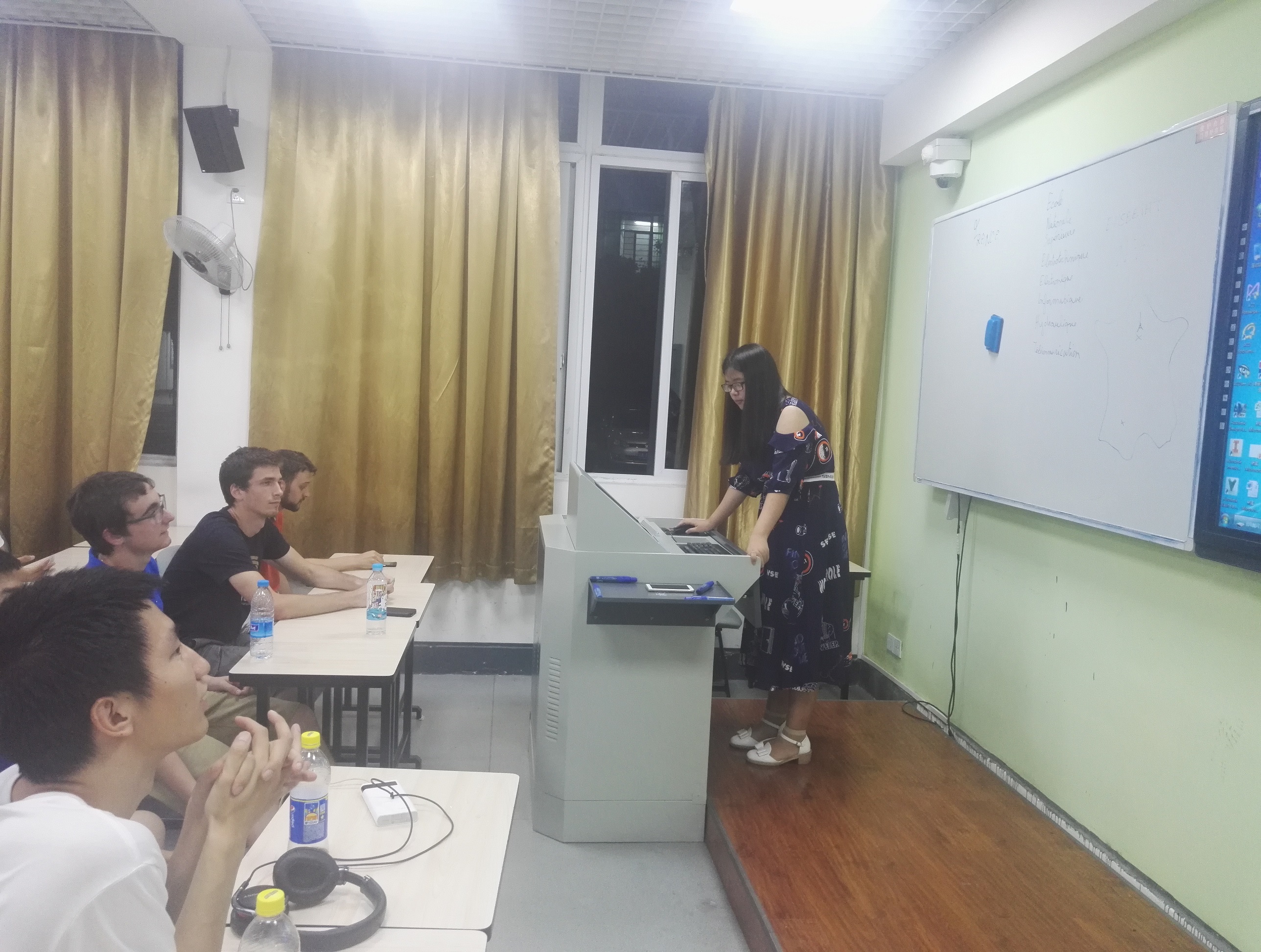 2017年国际交流营活动的中外文化交流活动在望江校区第三教学楼107顺利举行。此次活动为中外文化交流活动的第二部分,由中国科学技术大学的同学主讲,四川大学、图卢兹大学的同学共同参与。本次活动中,将向大家详细讲解中国科学技术大学的前世今生、科技成果以及有关电子信息专业的相关内容。此次活动的目的旨在进一步加深同学们之间的了解,加强同学们之间在文化、学术上的交流,了解各个院校中与电子信息专业相关的知识,开拓同学们的眼界。