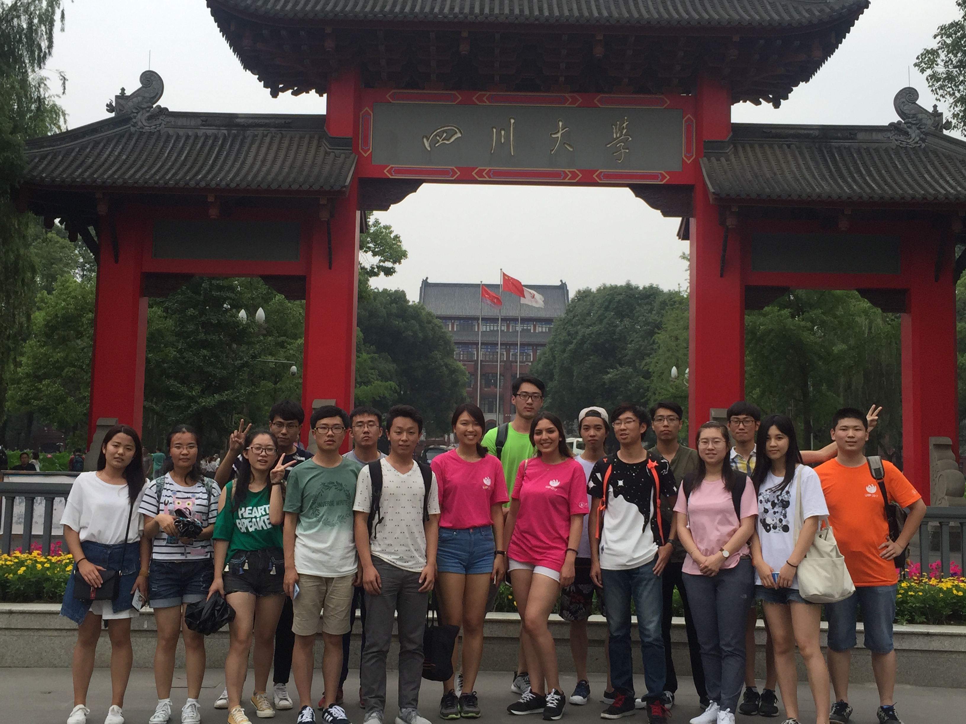 领导和全体中外同学共同参与的开幕仪式暨座谈会在望江校区西五教附101A落下帷幕。15时30分,中外参加交流营活动的同一起游览四川大学望江校区。首先参观的望江行政楼,中方同学耐心地向他们讲解着建筑的特点以及行政楼的主要办公作用,交流学生都听得很认真,并感叹着这栋建筑的艺术魅力。队伍来到了双荷池,池塘开着出淤泥不染濯清涟不妖的莲花,同学们熟练地用英语向外国友人讲解着这一景色。接着,队伍来到望江北门,交流的同学很是赞赏这一特色建筑,并主动提议在校门前进行了整支队伍的合照。16时20分,同学们坐上了开往四川大学江安校区的校车。