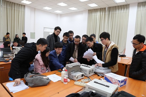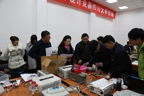 的30余支参赛队伍准时到达测试点开始调试作品。上午十点,各类别作品的评测工作井然有序地展开。评审老师们耐心地听参赛队伍的解说,仔细观察各队伍的演示,对作品中的优、缺点分别进行了点评,鼓励大家再接再厉。创意类参赛队伍派出代表,对小组研究成果作了详尽的ppt展示,面对评委老师们的提问应答自如。待所有参赛作品测试完毕,本届“五粮春杯”科技创新设计大赛圆满结束。
