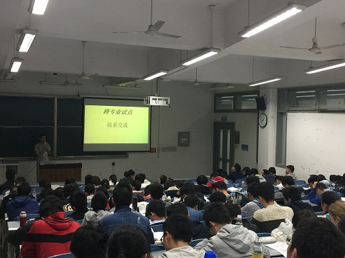 魏鹏锦同学阐述了宣讲会另一个主题跨专业试点的内容,他对跨专业试点的主要形式跨专业社团做了具体介绍,他指出,跨专业社团有利于培养多方面的人才。魏鹏锦同学展示了各8bo即时比分