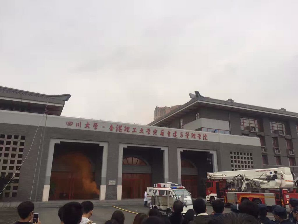 工作人员、校保卫处勤务大队、校医院以及成都消防官兵等多方配合下,整个人员疏散与火灾扑救工作顺利完成。