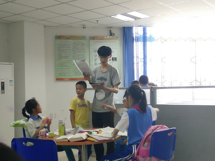 下午15时30分,志愿者们准时在四川大学江安校区西南们门口会合。16时20分志愿者们到达双流县石羊场新街社区、三元社区综合服务站。志愿者们在旁边监督青少年们做题或者给他们听写,孩子们问题渐渐多了起来,即使是不同的孩子问一样的问题,志愿者们也会耐心地一一解答,而不是不管或让他们自行解决。志愿者们一丝不苟,圆满地完成了活动。