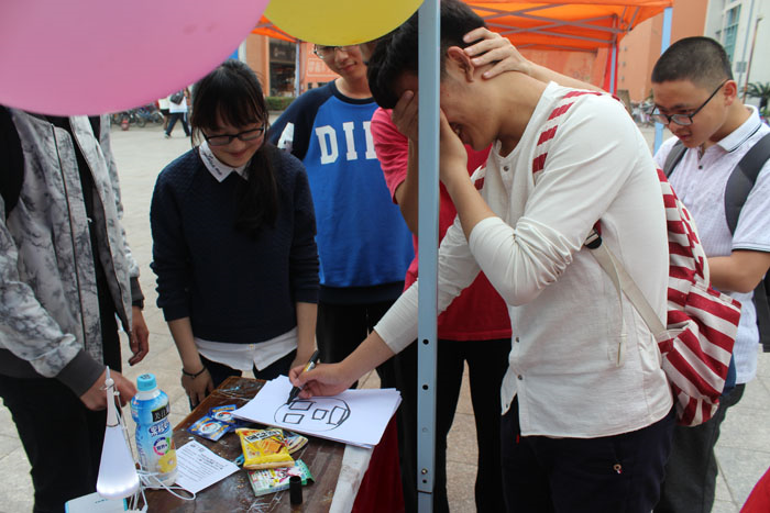 早上7点30分,宣传部的干事们就开始搬物资为一整天的活动做准备。活动中,干事们也参与其中积极示范,吸引了很多路过的同学驻足观看并参与到游戏中,其间干事们都热情地向参与者介绍游戏规则和奖励制度。有很多同学选择跳格子游戏,还有一些选择了抓石子游戏……因为这些游戏都是大家童年时期精通的小游戏,所以大家都完成得很顺利,同时也得到了奖励的小零食。游戏结束后大家意犹未尽地离开了,相信短暂的游戏时间带给了他们好心情。到了下午天气由阴转晴,宣传部的干事们索性开始了丢沙包游戏,并在输的人身上挂上气球作为惩罚,青春广场上传来一阵阵欢声笑语。伴随着太阳的余晖,这次活动顺利地结束了。