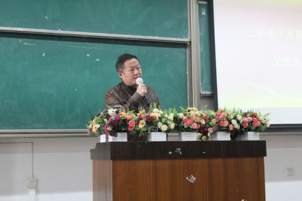 教育事业的感谢,再者,他告诫同学们应当珍惜校园里的教学资源并加以利用,多多积累专业知识,为今后的发展打下基础。接着由三信电子有限公司副总经理吴俊先生上台讲话。吴俊先生就三信公司的现阶段发展状况及对公司未来的预期向同学们作了简要的介绍,同时吴俊先生也表示,希望8bo即时比分