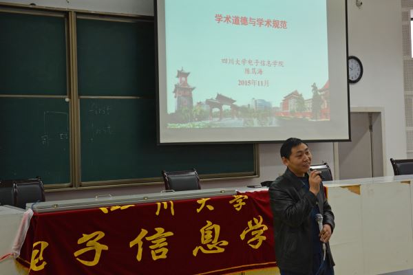 上午八点半,活动准时开始。冯院长首先以今年中国发生的学术造假事例讲起,使我们认识到造假产生的恶劣后果。接着以学术规范为重点,结合我们学校的实际情况,详细讲解了一些细小的环节可能会酿成的学术不端行为,同时,根据我们专业的特殊性,强调了不能伪造实验数据、实验现象等问题。最后,为同学们写论文给予了一些建议,使大家感觉收获颇丰。之后,陈书记以学术道德为侧重点,进行了相关的讲述。首先从学术道德的概念出发,让大家认识到为学术,应知仁义。然后列出了一些学术不端行为及表现,并深入分析了它们存在的原因。之后以我们学校为例,介绍了相关的规范制度。最后提出了学术规范现存的问题与挑战。
