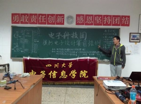电子科技园模拟电子设计协会(第一组)主办,电子科技园第一组、电子科技园POV协会(第一组)、电子科技园POV协会(第二组)、电子科技园数字电路设计(第二组)协办的电子科技园模拟电子设计赛前培训活动于四川大学江安校区第二基础实验楼电子科技园实验室成功举办。