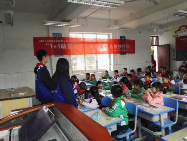 中午12时30分,志愿者们在四川大学青春广场集合出发,13时来到青少年空间进行简单的准备工作,14时30分左右到达目的地双流县永安镇红花小学。志愿者们协助老师们布置好教室,等待同学们的到来。