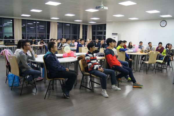 晚上7点,交流会正式开始,教室里座无虚席。首先主持人简单介绍了各位学姐学长,然后夏茂才学长发言,他介绍了8bo即时比分