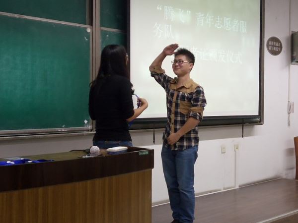 “腾飞”青年志愿者服务队队长许一宁上台致辞并宣布“腾飞”青年志愿者服务队第一次干训会正式开始,接着执行部和策划部的各位部长依次介绍“腾飞”青年志愿者服务队成员需要参与的活动、注意事项和需要做的工作。内容包括“青空”及“百斯特”活动的详情、申请表及公示表的填写,还有策划书、新闻稿及总结的书写格式和注意事项等。新干事们认真地聆听并做记录。干训会接近尾声的时候,各部门部长为新成员们颁发志愿者证,全体成员合影留恋来纪念这个有意义的时刻。晚上21点40左右,主持人宣布本次8bo即时比分